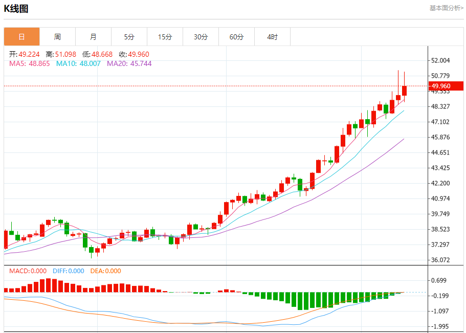 现货白银:截止北京时间20:23,现货白银上涨,现报49.922,涨幅1.40%。纽市盘前,(白银)价格在最后一个交易日扩大了涨幅,在达到超卖水平后,除了相对强度指标上出现积极信号之外,在EMA50上方交易导致的积极压力的持续下,以及在短期基础上的主要看涨趋势和该轨道的支持性次要趋势线的主导下,白银价格在最后一个盘中交易中稳定在49.70美元阻力上方。