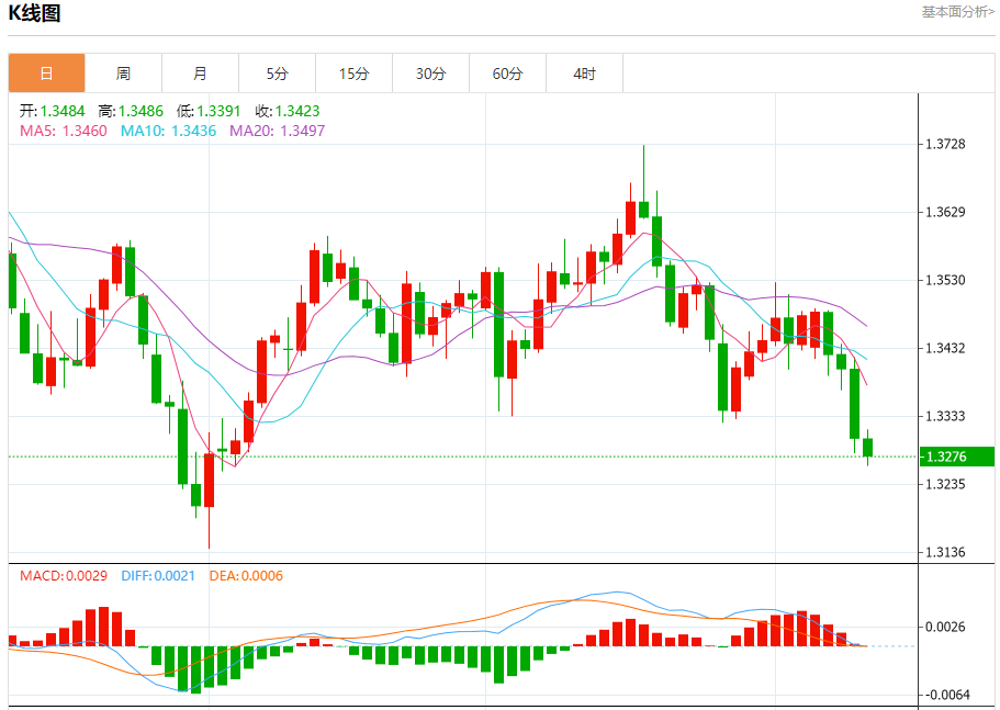 英镑/美元:截止北京时间20:23,英镑/美元下跌,现报1.3277,跌幅0.20%。纽市盘前,(GBPUSD) 价格在上一交易日盘中大幅收低,在短期内主要空头趋势占据主导且价格沿趋势线交易的背景下,由于价格位于 EMA50 以下,持续受到负面压力,最终跌破关键支撑位 1.3340。该支撑位是我们在之前分析中建议的目标,这进一步加大了对价格的负面压力。