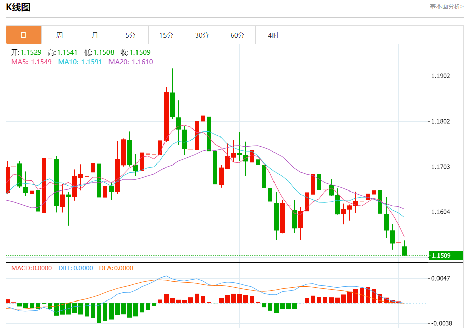 欧元/美元:截止北京时间20:23,欧元/美元下跌,现报1.1510,跌幅0.23%。纽市盘前,(EURUSD)的价格在最近的日内交易中下跌,在短期内主要看跌趋势完全占据主导,并且其交易沿着这一轨迹的支撑趋势线进行,在释放部分相对强弱指标的超卖状态后,增加了下行压力。