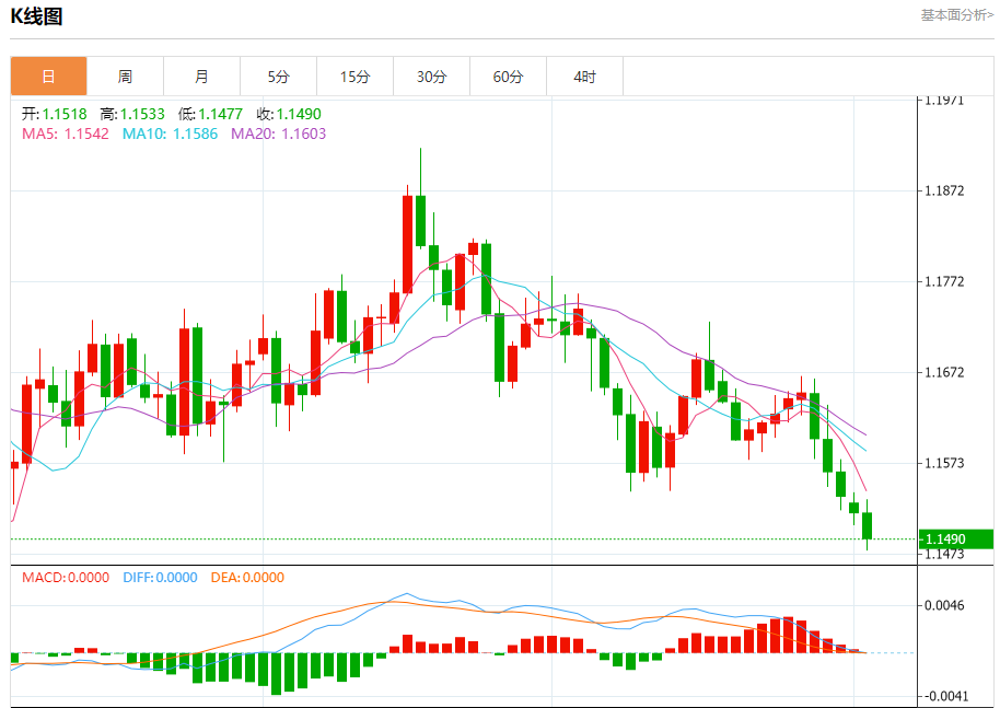 欧元/美元:截止北京时间20:20,欧元/美元下跌,现报1.1491,跌幅0.25%。纽市盘前,(EURUSD) 的价格在最近的日内交易中下跌,准备突破当前位于 1.1490 的支撑位,在短期内主要空头趋势占主导,同时价格沿着支撑趋势线交易。此外,相对强弱指标出现了负交叉,并在超卖状态消化后加剧了下行压力,这进一步强化了负面压力。