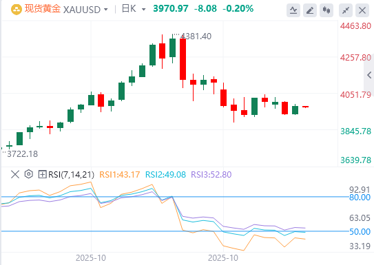 技术面:黄金仍被困在3900美元至4050美元的狭窄区间内,反映出交易员之间的犹豫不决。由于该金属持续交投于3990美元附近的21期简单移动平均线(SMA)下方,短期偏向小幅看空,该均线抑制了其即时上行尝试。若要实现更强劲的回升,需要突破此前由支撑位转为阻力位的4020-4050美元区间,才能吸引新的买盘兴趣。下行方面,3900美元附近持续的买盘兴趣目前仍提供坚实支撑。若明确跌破该水平,可能会开启进一步下跌空间。相对强弱指数(RSI)维持在49左右,缺乏明确方向,黄金短期内仍有可能维持区间震荡走势。