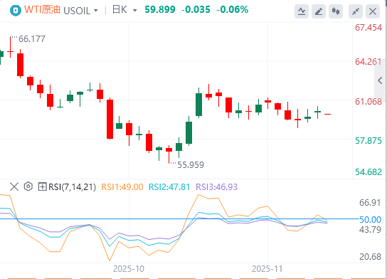 周二亚盘,原油交投59.89附近。油价周一温和收高,市场呈现供需博弈格局,成品油供应紧张推升价格,而原油供应过剩的担忧则限制了涨幅。交易员正密切关注停摆协议的后续进展,但疲软的需求信号和持续上升的库存仍在压制油价。市场目前尚未形成明确趋势,需保持灵活应对。