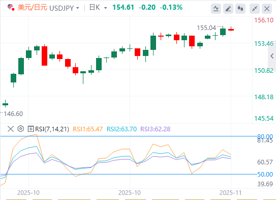 日本央行行长植田和男周四表示,日本央行将努力创造强劲的经济,以便在不加税的情况下增加税收。美元/日元在周三上涨超过0.4%后,周四欧洲早盘仍处于154.50上方的盘整阶段。