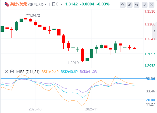英镑:截至发稿,英镑/美元徘徊在1.3142附近。关键的英国消费者物价指数(CPI)通胀数据将于周三公布,分析师预计将再次小幅下降。因政府关门而推迟的美国非农就业人数(NFP)数据定于周四发布。技术面上,跌破1.3145水平将为1.3015至1.3030支撑的测试打开道路。