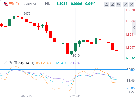 英镑:截至发稿,英镑/美元徘徊在1.3054附近。英国通胀数据回落强化了英国央行12月降息预期,英镑兑美元周三下跌0.71%至1.3050。市场焦点转向下周将公布的预算案,这将继续影响英镑走势。技术面上,跌破1.3070将为1.3015至1.3030支撑的测试打开道路。