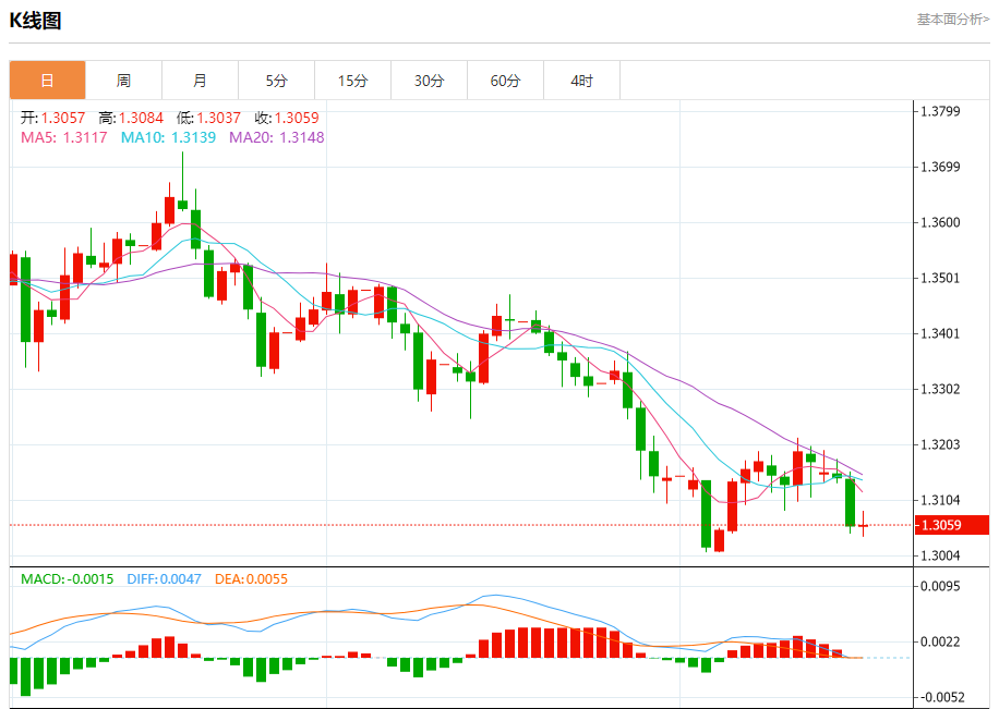 英镑/美元:截止北京时间21:20,英镑/美元上涨,现报1.3061,涨幅0.02%。纽市盘前,(GBPUSD)价格在最后一个交易日继续下跌,受短期基础上形成的负面技术形态(下跌楔形形态)的影响,该形态在牛市纠正波期间形成,以结束近期可持续复苏的任何机会,特别是由于其交易低于EMA50的负面压力的持续,尽管达到了超卖水平。