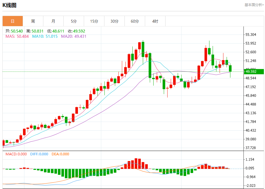 现货白银:截止北京时间21:20,现货白银下跌,现报49.599,跌幅1.97%。纽市盘前,(白银)价格在最后一个盘中交易中加深了损失,因为来自EMA50下方交易的负面压力仍在继续,短期内突破了看涨趋势线,加剧了负面压力,特别是在相对强度指标上出现了负面信号,尽管达到了超卖水平。