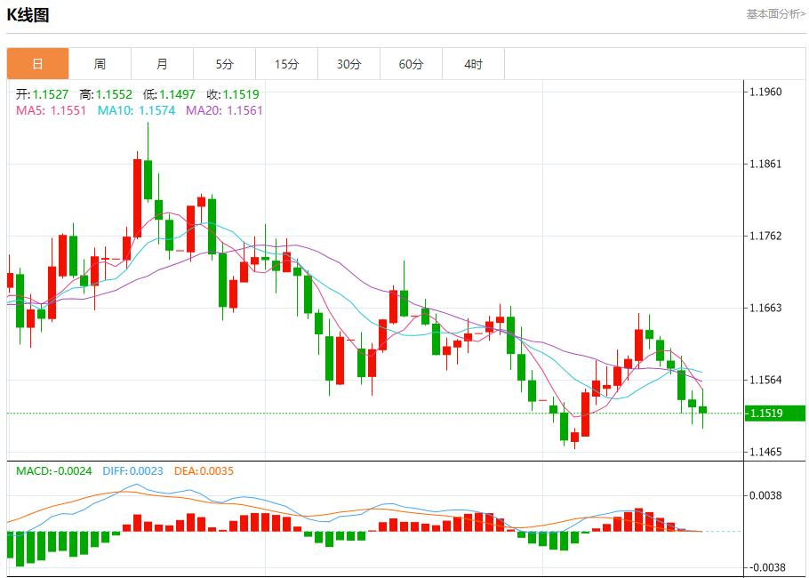 欧元/美元:截止北京时间21:20,欧元/美元下跌,现报1.1520,跌幅0.07%。纽市盘前,(EURUSD) 的价格在最近的日内交易中下滑,这是由于1.1540的阻力位保持稳定,在主要下行趋势占主导地位以及短期内沿着小趋势线交易的背景下,同时在到达相对于价格走势被夸大的超买水平后,相对强弱指标开始形成负背离,并由此出现负面信号。