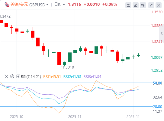 英镑/美元周二连续第二天停留在约1.3100的狭窄通道内。投资者热切期待周三的秋季预算报告。