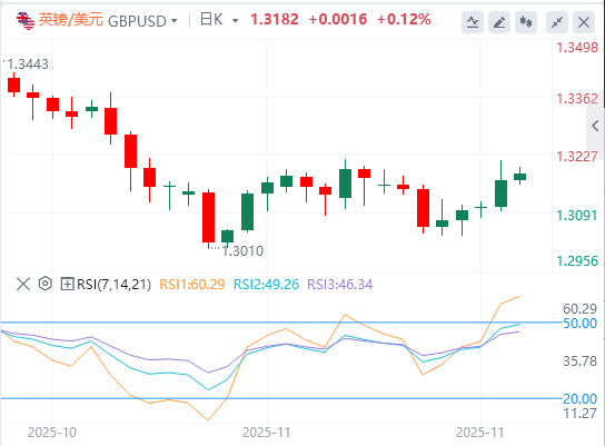 英镑兑美元利用美元再次走弱的机会,周二上涨约0.5%。该货币对在周三欧洲早盘继续微升至1.3200。当天晚些时候,英国财政大臣瑞秋·里夫斯将公布秋季预算。