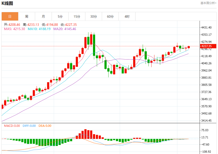 现货黄金:截止北京时间21:20,现货黄金上涨,现报4227.53,涨幅0.45%。纽市盘前,(黄金)价格在最后一个交易日上涨,准备攻击4,245美元的关键阻力,受其在EMA50上方的持续交易支撑,在短期主要看涨趋势和沿趋势线交易的主导下,相对强度指标出现积极信号。