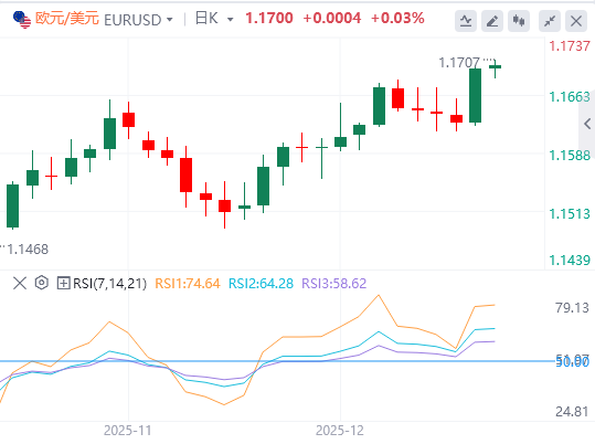 这使得利率期货市场为明年定价至少两次降息,并打压美元,从而推动欧元/美元突破技术阻力位并升至1.17上方。