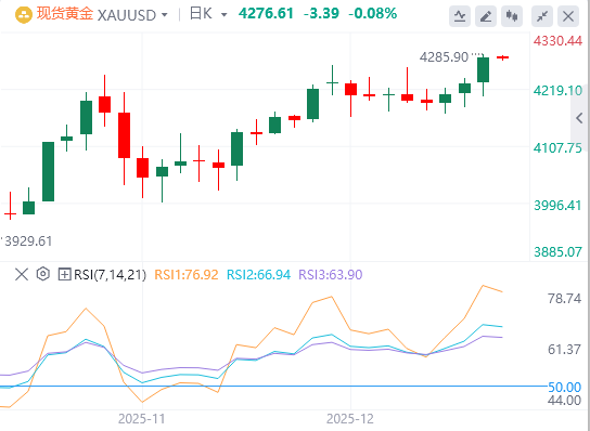 周五亚盘,黄金徘徊在4276.61附近。黄金在周五亚洲早盘上涨至七周高点,接近4275美元。随着美联储(Fed)降息20.5个百分点,美元走低,黄金的上涨空间进一步扩大。根据美国劳工部(DOL)周四的数据,上周提交新失业救济申请的美国人数创下近四年半以来的最高增长。这一低于预期的就业数据对美元造成压力,也为美元计价的大宗商品价格提供了一定支撑。