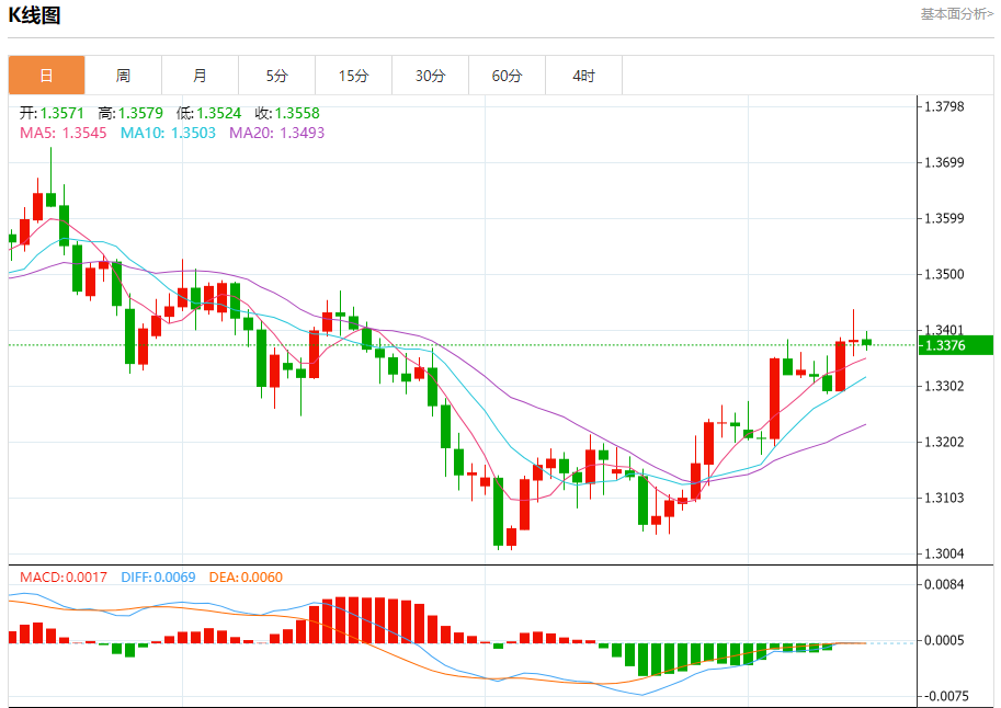 英镑/美元:截止北京时间21:20,英镑/美元下跌,现报1.3376,跌幅0.05%。纽市盘前,GBPUSD在盘中的最后一次交易中下跌,原因是阻力稳定在1.3415,这是我们之前分析中的潜在目标,以收集之前上涨的收益,试图在相对强度指标上卸载一些超买条件,特别是在负面信号出现的情况下。