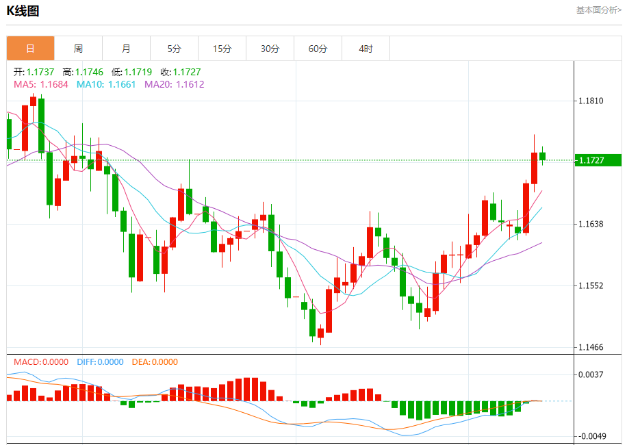 欧元/美元:截止北京时间21:20,欧元/美元下跌,现报1.1728,跌幅0.08%。纽市盘前,(欧元兑美元)的价格在最后一个交易日下跌,原因是相对强度指标上出现了负面信号,在寻找上涨低点以作为再次上涨和恢复的基础之后,主要看涨趋势占主导地位,其交易沿着支持该趋势的次要趋势线进行。
