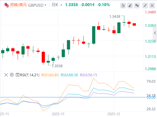 英镑:截至发稿,英镑/美元徘徊在1.3358附近,,英镑可能会继续成为焦点。国内日历安排繁忙,关键的英国数据发布和英国央行(BoE)在12月18日的政策会议将决定近期的方向。技术面上,若跌破50日均线1.3329,将推动英镑/美元向支撑位移动,该支撑位位于1.3250至1.3365区间。