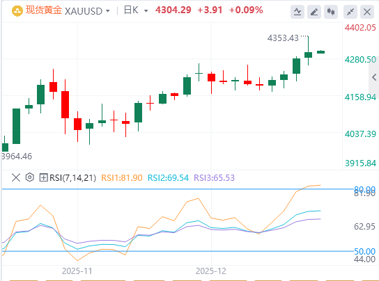 技术面:黄金看涨,但可能进入盘整阶段。20日SMA高于100日和200日SMA,三者均呈上升趋势,强调了坚定的看涨偏向。较短的SMA在4172美元附近提供动态支撑。技术指标已达到超买区域,并部分失去了上升的力度,暗示在即将到来的交易中可能出现修正性下跌。然而,整体上升趋势依然存在,投机兴趣可能会推动黄金价格向4380美元区域及更高水平发展。