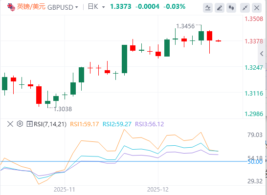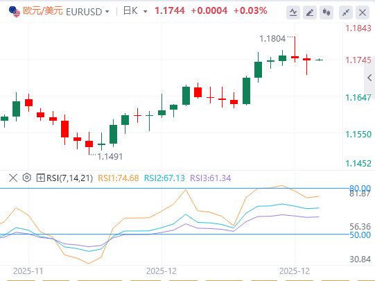 技术面:黄金整体上涨趋势依然完好,但买家似乎缺乏突破4350美元/盎司的实力。从技术面来看,相对强弱指数(RSI)显示,看涨势头正在加速,表明金价可能触及4381美元/盎司的历史新高。如果这一结果实现,金价将扫清障碍,挑战4400美元/盎司、4450美元/盎司和4500美元/盎司的关键阻力位。下行方面,如果金价跌破4300美元/盎司,下一个支撑位在12月11日高点4285美元/盎司(该高点已转为支撑位),在4250美元/盎司附近还有进一步的支撑,若失守该位,金价可能会进一步回落向4200美元/盎司。