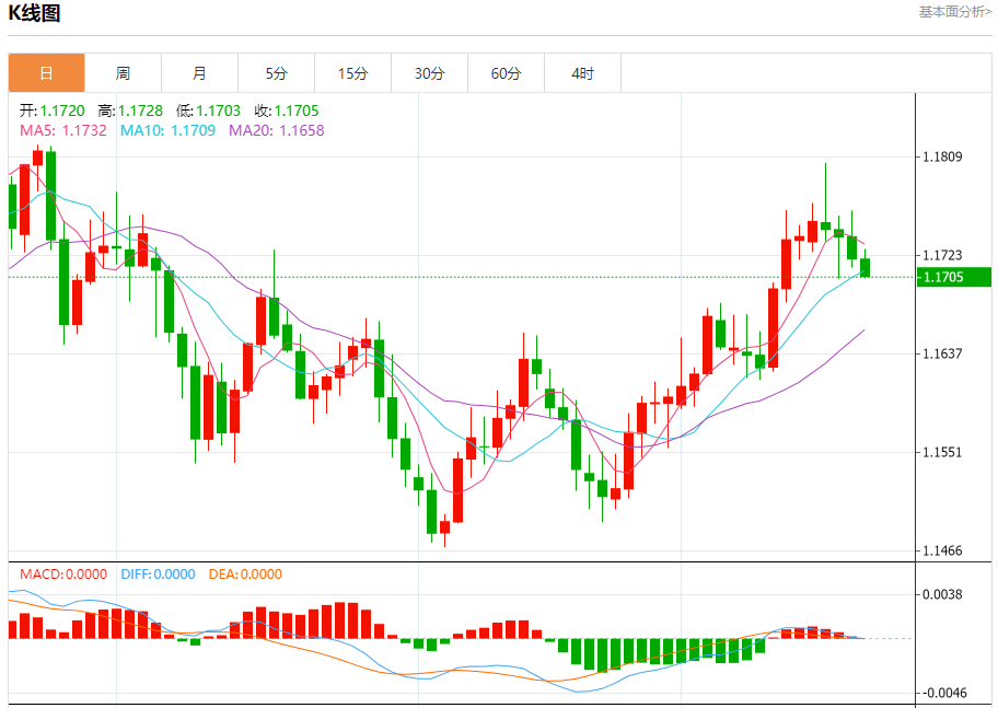 欧元/美元:截止北京时间21:20,欧元/美元下跌,现报1.1706,跌幅0.13%。纽市盘前,(欧元兑美元)的价格在最后一个交易日下跌,试图寻找上涨的低点,以帮助其获得恢复所需的看涨动力,依靠EMA50的支持,在短期基础上的看涨趋势占主导地位,以及在达到超卖水平后,其沿着该趋势的支撑趋势线交易,伴随着相对强度指标上出现积极信号。