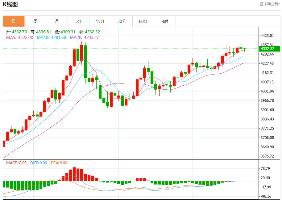 现货黄金:截止北京时间21:20,现货黄金下跌,现报4332.66,涨幅0.03%。纽市盘前,(黄金)价格在最后一个交易日继续波动交易,在窄幅横盘交易中,试图获得看涨势头,这可能有助于它在近期创下新的历史新高,这是由它在EMA50上方的连续交易支撑的,在短期主要看涨趋势的主导下,在达到超卖水平后,除了在相对强度指标上出现积极的重叠信号外,它还沿着趋势线交易。