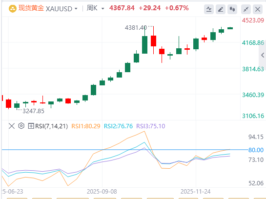 周一亚盘,黄金徘徊在4367.84附近。市场对美联储2026年降息的预期持续升温,以及随着圣诞假期和新年假期的临近,地缘不确定性增加,为金价提供支撑。新的一周将迎来圣诞节假期,但因为美国政府停摆而延迟的三季度GDP数据将于本周公布,投资者需要重点关注。