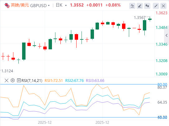 英镑兑美元在周一下跌至1.3400后急转直上,当日上涨约0.6%。该货币对持续上涨,欧洲早盘时段位于1.3560上方,达到自九月中旬以来的强劲水平。