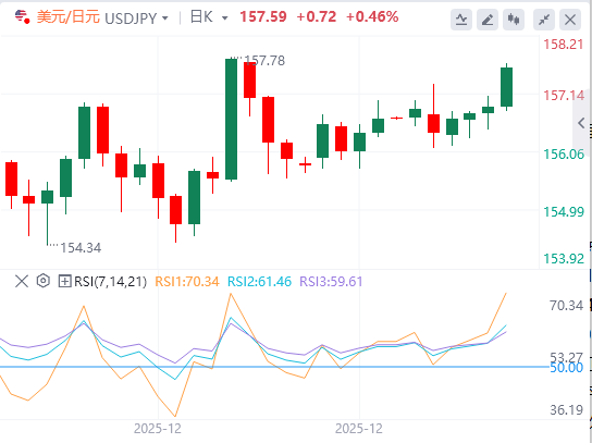 美元兑日元在周四收盘小幅上涨后,周五获得多头动能,攀升至157.50。