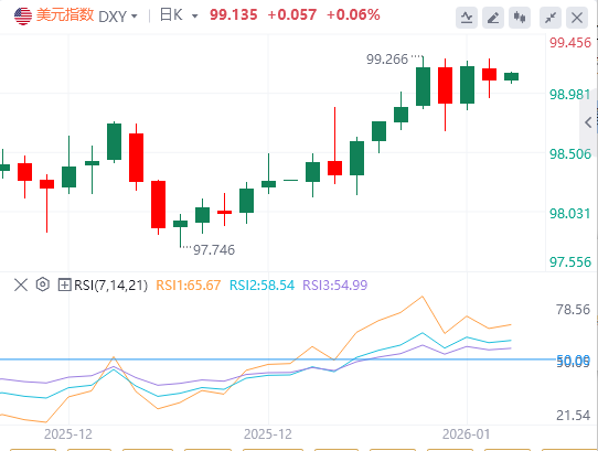 1月15日,北京时间周四亚市早盘,美元指数徘徊在99.13附近。周三,尽管零售销售数据超预期,但围绕美联储独立性的政治不确定性仍挥之不去,美元指数最终收跌0.11%,报99.07;基准的10年期美债收益率最终收报4.136%,对美联储政策利率敏感的2年期美债收益率收报3.520%。从委内瑞拉到伊朗等地缘政治热点,以及特朗普政府对美联储的攻击,都促使投资者寻找避险资产。现货黄金盘中逼近4640美元,再创历史新高,最终收涨0.92%,报4628.14美元/盎司;现货白银最终收涨7.2%,报93.17美元/盎司。特朗普暗示可能暂缓对伊朗军事行动,油价随即短线暴跌4%。,但一则关于伊朗首都德黑兰可能发生爆炸的新闻使美、布两油在纽约尾盘短线拉升1.2美元。WTI原油最终收涨1.13%,报61.79美元/桶;布伦特原油最终收涨1.17%,报66.35美元/桶。