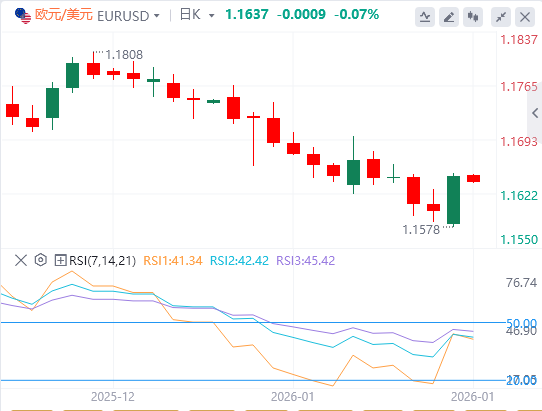欧元:截至发稿,欧元/美元徘徊在1.1637附近。欧元兑美元周一上涨超过0.40%,交易员放弃美元,特朗普决定升级美欧贸易战,白宫因格陵兰问题关注而加剧美联贸易战。技术面上,若突破50日均线1.1645,将为测试下一阻力位1.1715至1.1730打开道路。