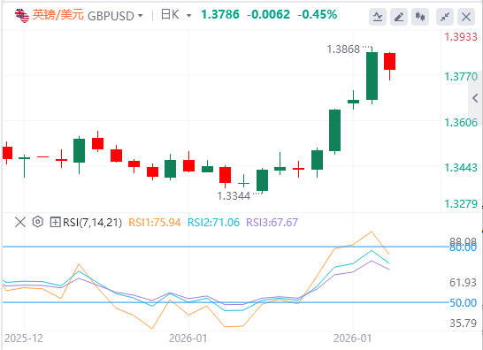 英镑:截至发稿,英镑/美元徘徊在1.3786附近。英镑/美元周二上涨后短暂波动,但整体稳定在四年高点附近,美元仍在努力寻找定位。美联储(Fed)维持了利率稳定,正如许多投资者普遍预期的那样,但美联储的利率声明和美联储主席鲍威尔都未能透露未来可能降息的迹象,而许多投资者普遍希望如此。技术面上,英镑兑美元最近的支撑位位于1.3710至1.3725区间。跌破1.3710水平将为1.3570至1.3585支撑的测试打开道路。