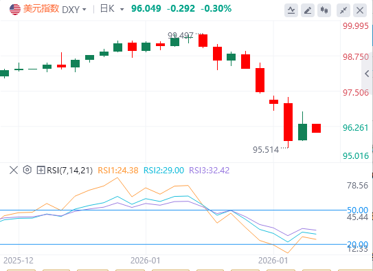 周三,因美联储维持利率不变,美元指数日内持续反弹,重回96上方,截至目前,美元报价96.04。