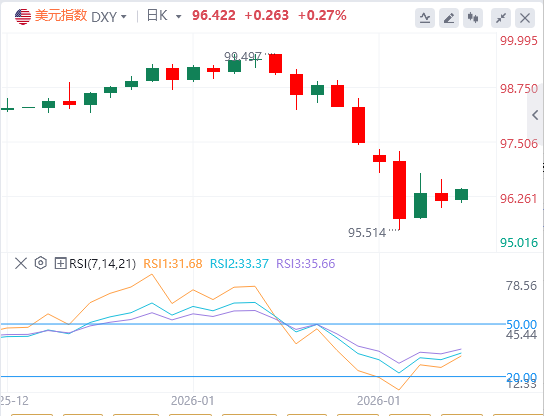 1月30日,北京时间周五亚市早盘,美元指数徘徊在96.42附近。周四,尽管美联储释放出略偏鹰派的信号为美元提供了一定支撑,但投资者对美国政策前景仍心存疑虑,美元指数在美盘阶段一度涨至96.66的日内高点,随后急速下滑并回吐日内全部涨幅,最终收跌0.19%,报96.15;基准的10年期美债收益率收报4.240%,对美联储政策利率敏感的2年期美债收益率收报3.567%。现货黄金日内振幅近500美元。其在亚盘再度逼近5600美元,但仍未能站上此处,并在美盘急转直下,较高位一度大跌400美元,但随后又上演V字行情,收复超200美元失地,最终收跌0.85%,报5370.87美元/盎司;现货白银也随黄金剧烈波动,盘中一度跌超10美元,最终收跌1.12%,报115.46美元/盎司。因市场担忧若美国袭击伊朗可能影响全球供应 ,油价再次大涨3%。WTI原油盘中持续上行,并在美盘时段涨至66.54美元的近5个月新高,最终收涨3.11%,报65.55美元/桶;布伦特原油收涨2.95%,报69.42美元/桶。