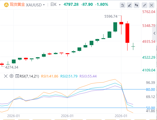 2月2日,北京时间周一亚市早盘,美元指数徘徊在97.12附近。上周五,在美国总统特朗普宣布前美联储理事沃什为下一任美联储主席人选后 ,美元指数大幅走强,并冲上97关口上方,最终涨1.02%,报97.13;基准的10年期美债收益率收报4.238%,对美联储政策利率敏感的2年期美债收益率收报3.539%。现货黄金自欧盘时段开启跌势,盘中一度暴跌12%至4680美元一线,创1983年以来最大单日跌幅,单日振幅近770美元,且抹去本周所有涨幅,最终收跌9.19%,报4883.45美元/盎司,周线收跌2.2%;现货白银一度重挫35%至73美元一线,创下有记录以来最大单日跌幅,最终收跌26.37%,报85.01美元/盎司,周线大跌超17%。现货铂金、钯金单日收跌超17%。周一,黄金低开90美元,白银低开4.5%。在美伊持续紧张局势支撑下,油价仍维持在近六个月高位附近。WTI原油在65美元上下宽幅震荡,最终收涨0.35%,报65.78美元/桶;布伦特原油收涨0.28%,报69.61美元/桶。
