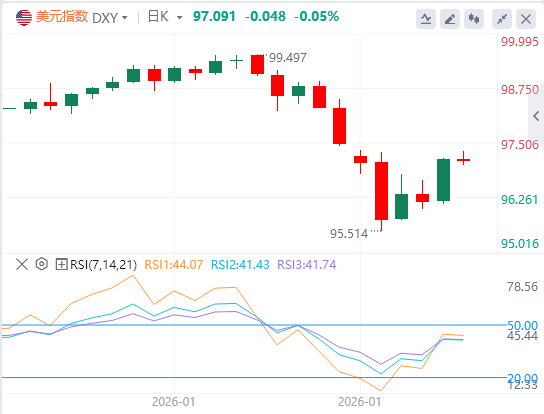 上周五,在美国总统特朗普宣布前美联储理事沃什为下一任美联储主席人选后 ,美元指数大幅走强,并冲上97关口上方,截至目前,美元报价97.09。