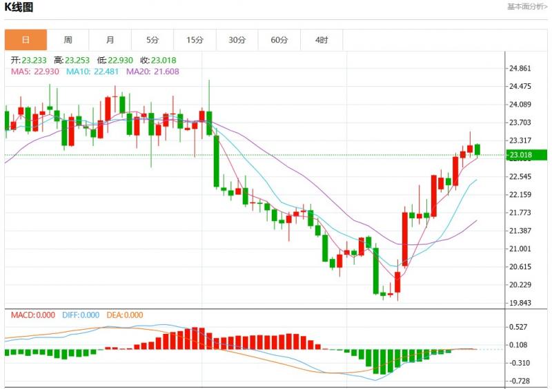 周一欧市盘中,现货白银报23.017,跌幅0.82%。