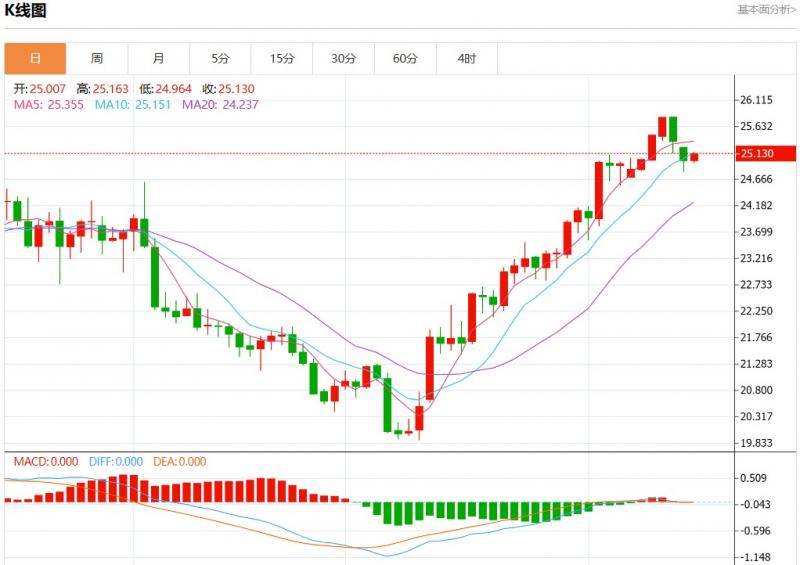 周二欧市盘中,现货白银报25.127,涨幅0.38%。