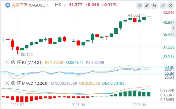 银价自36.20一线开始震荡上行,隔夜创出近来新高,达到41.65一线,涨幅进一步扩大到5.45美元,交易重心继续上行,表明当前白银走势为偏多。均线系统上,价格重新站上60均线及100均线,表明白银重拾上涨之势。操作上,顺当前走势,坚持逢低做多的操作思路,关注支撑位40.95一线,如若在此震荡企稳,可考虑布局多单,上行关注41.65一线,若上破,则多头进一步测试42.00的整数关口。