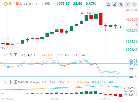 回顾近期,现货金周一曾触及4381.1美元的纪录高位,此后却下跌超6%,投资者获利了结以及贸易紧张局势缓和抑制避险需求,是导致金价下跌的重要原因。交易商预计,美联储几乎肯定会在本周会议上降息,且12月有望再次降息。降息会降低持有黄金等非孳息资产的机会成本,对黄金市场有一定支撑作用。
