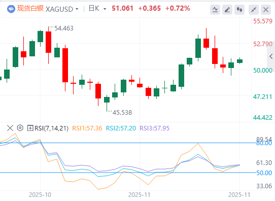 数据方面:10月中旬当周初请失业金人数飙升至两个月最高点,续请失业金人数更是直接突破190万人大关。与此同时,克利夫兰联储披露上个月有整整3.9万美国人提前收到裁员通知,ADP私营就业报告也显示,过去四周平均每周净裁员高达2500人。这些数字叠加在一起,只传递出一个信号——美国劳动力市场正在急速恶化!美国数据崩盘直接提升了市场对12月份降息概率,支撑了黄金多头反弹。市场焦点都是紧盯周四公布的非农数据寻找最后对降息预期的线索。