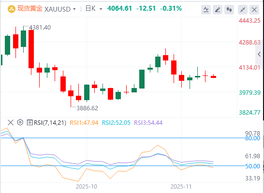 数据方面:9月非农就业岗位新增11.9万个,是经济学家预测值5万个的两倍多!8月数据也被大幅下修至-0.4万个。这份迟到却异常强劲的报告瞬间让“美国经济正在硬着陆”的叙事被撕得粉碎。这份数据基本坐实了美联储10月会议纪要里的判断——就业市场只是放缓,但远谈不上崩溃,12月降息概率越来越小,这也打压了多头情绪令黄金承压下跌。但9月失业率从8月的4.3%意外升至4.4%,创下四年新高!这份“强劲中的疲软”让交易员们瞬间分裂:鹰派看到了就业岗位爆发式反弹,鸽派则死死抓住失业率抬升不放,多头就看到反攻希望。目前只能进一步观察经济数据表现,寻求市场关于降息预期线索了。