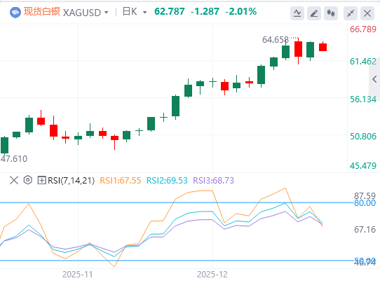 从波浪来看,白银当前处于自下方56.40一线开启上行的四浪整理期间,可尝试布局第五浪上行。整体来看,白银向上突破此前长时间盘整平台,表现为多头趋势的延续。从下方MACD指标来看,呈现出缩量调整。操作上建议逢低布局多单思路为主。