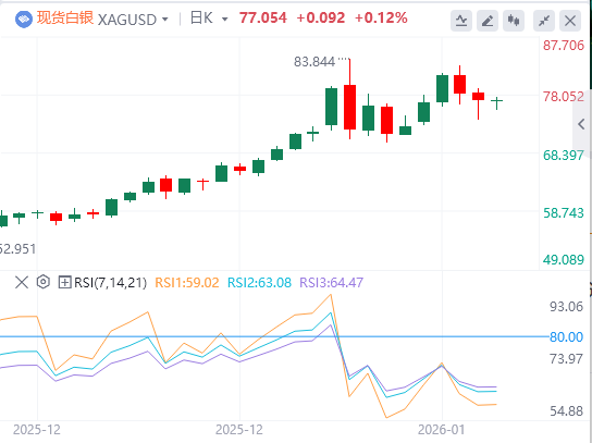 从形态结构看,白银沿着下降趋势线调整向下,在关键支撑位74.00附近止跌企稳,开启了反弹之路,目前多头已经突破了下降趋势线,由短空转为多头反攻浪节奏。从k线看,多头突破回踩支撑线企稳开始慢慢上攻,多头力量稳步向上,后市继续看反弹新高走势。综合 MACD指标看,快慢线低位金叉信号出现,表明多头开启反攻之路。策略上建议顺反弹节奏找支撑位埋伏多单思路为主。