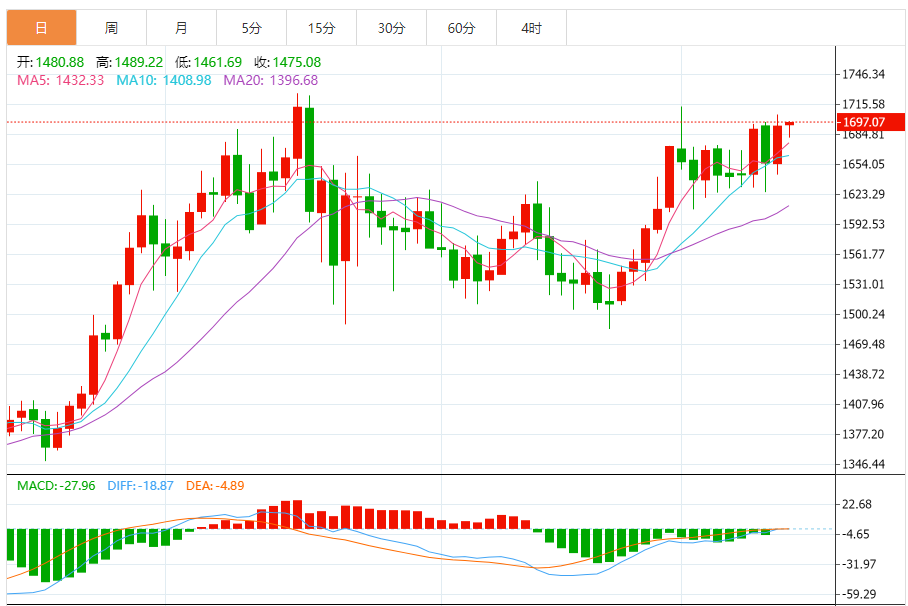 铂金价格走势图今日最新铂金行情(2025年12月12日) 今日最新铂金行情:1696.91 备注:以上铂金价格仅供参考,请以官方价格为准。