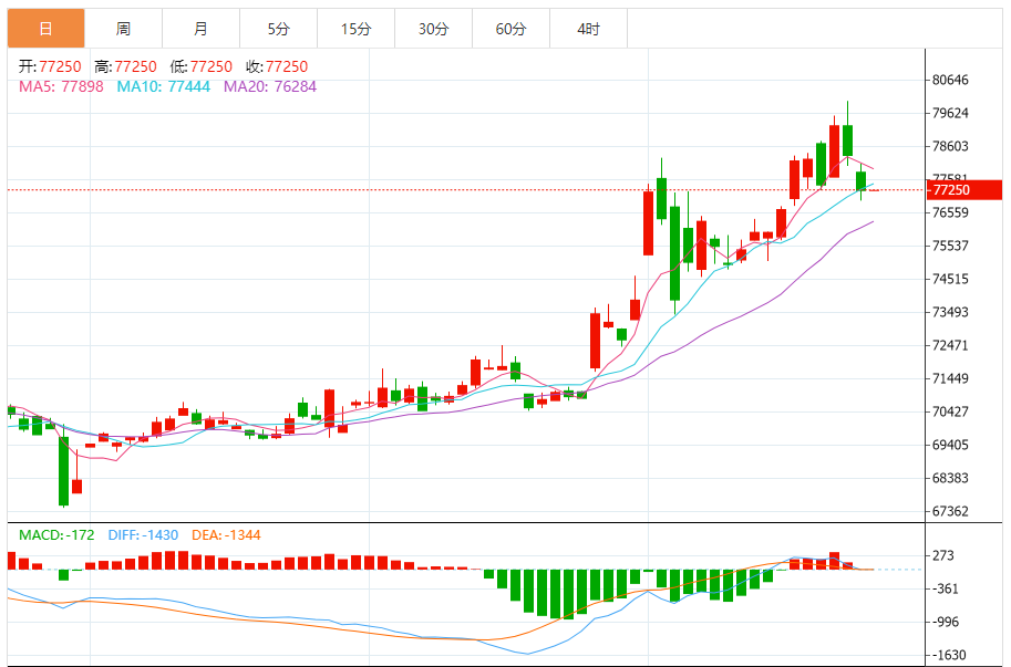 黄金:内外盘分化明显,日线调整信号浮现 (1)国际黄金(伦敦金现):高位回调测试支撑 日线级别呈现明确调整态势:金价自4059.9美元高点回落,日内跌破5日均线(4020美元)与10日均线(4015美元)双重支撑,收出带长上影的阴线,形成“双顶”形态雏形,颈线位锁定3980美元。技术指标同步走弱:ACD指标在