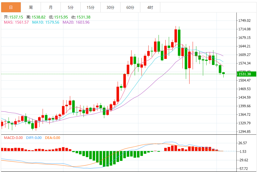 铂金价格走势图今日最新铂金行情(2025年11月5日) 今日最新铂金行情:1532.59 备注:以上铂金价格仅供参考,请以官方价格为准。