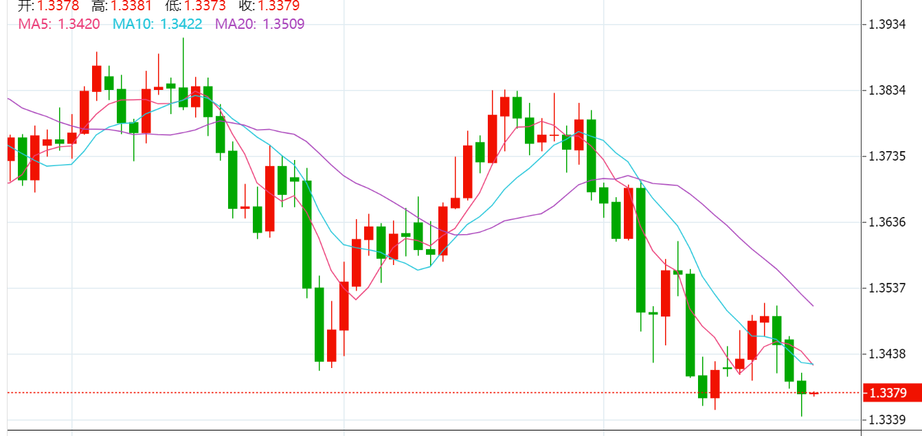 技术上,日图在前期低点1.3350一线有支持迹象,收录带下影线阴烛,关注能否站稳该档。4小时图仍遭遇MA5/10死叉打压,需要站上该线才能扭转短期下行态势。小时图反弹测试下降趋势线,多头动能仍有限。