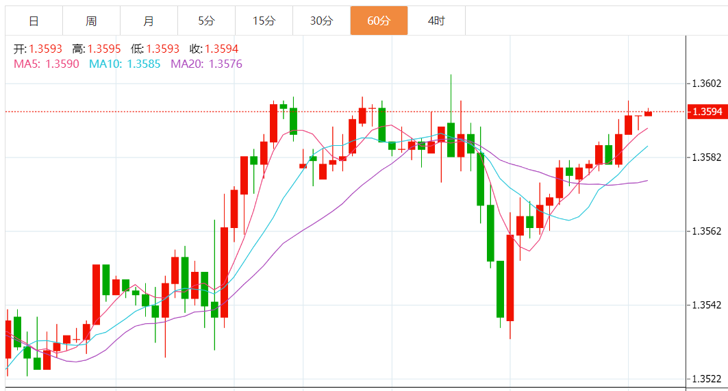 技术上,日图仍维持在MA5/10金叉上方,上行势头维持完好。4小时图一度在1.3600一线受阻回落,但仍企稳MA50上方。小时图V型反转,但1.3600曾两度遇阻,可能限制上涨空间。