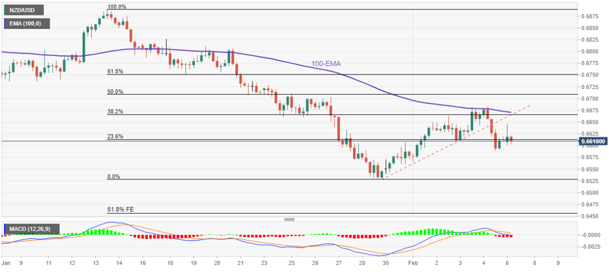 虽然多头努力守住0.6600,但明显跌破自1月28日以来的上行支撑线且自100EMA均线U型反转,MACD信号看跌令纽元兑美元空头充满希望。除了0.6600的整数关口,0.6570和近期录得的数月低点0.6530可能会引发纽元兑美元空头的关注。