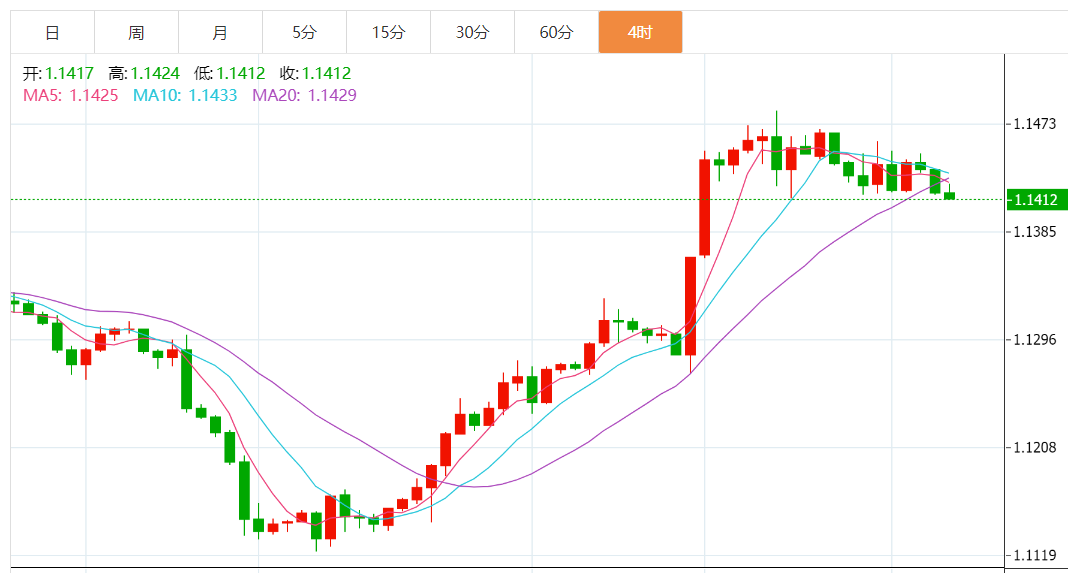 日图在前期高点1.1480附近遭遇阻力,随机指标倾向自超买区域回落,但仍企稳5日均线支持,关注该线支持。4小时图猛烈上涨后在高位拉锯,维持在MA20上方将有望进一步扩大涨幅。小时图在1.1480下方轻微受阻,短线回调关注1.1400一线。