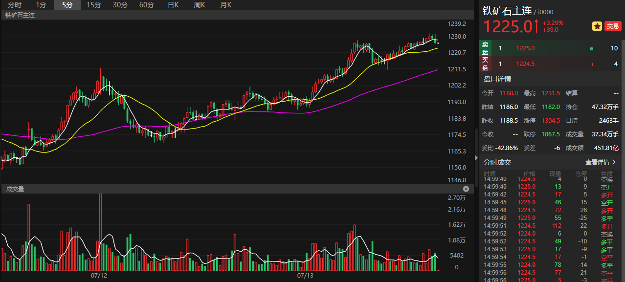 7月13日铁矿概念股拉升,港股市场铁货大涨8%;A股市场海南矿业涨逾7%,股价创逾四年半新高。大商所铁矿石期货主力合约现涨逾3%,报1223元/吨。2020年,我国共计进口铁矿石11.7亿吨,创下历史新高。进入2021年,我国对进口铁矿石的需求也只增不减。对于全球铁矿石市场来说,下半年依然存在很多不确定性的因素,例如疫情的反复、全球经济的恢复程度、中国压减钢铁产量的实际效果、矿山企业的市场操作手法等,均会明显影响铁矿石价格的走势,如果国内压减钢铁产量的实际效果极其明显,将会明显打压铁矿石的价格,考虑到政策的实施可能会叠加北方地区采暖季限产的影响,在其他因素不变的情况下,预计三季度普氏铁矿石指数将可能回归到200以下。